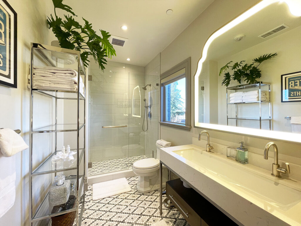 Inspired by small European art hotels, the R INN NAPA originally opened in 2018 in downtown Napa with 10 courtyard guest rooms. Housed inside of a historic building, a father and daughter team (Maurissa and Dion Heffran) had transformed the interiors into an unexpected oasis of modern design featuring bold, original artwork and sophisticated décor. In January 2021, the inn unveiled its Loft Building with five new two-story loft suites, adding another layer of modern indulgence. The new loft suites feature 20-foot ceilings, floating wood staircases leading up to the master bedroom, sleek décor, and every high-tech comfort imaginable. The first floor offers a cozy living room with a sofa sleeper, gas fireplace, and a wet bar. A spacious first-floor bath is equipped with heated stone floors, a deep soaking tub, a rainfall showerhead, and one of two remote-controlled bidet toilets with heated seats. A second bidet toilet is upstairs in the half bath off the master bedroom. The bedroom overlooks the living room and features an adjustable king-size bed with a lofty down duvet and luxurious sheets. The building and rooms are accessed via unique key codes. Guests can enjoy the inn’s bocci court and tranquil outdoor seating, a fully stocked kitchen, and a dramatic lounge with plush velvet seating, a sleek fireplace, large-scale art, and chandeliers of glowing disks suspended on wireframes. It’s an inviting space that takes an even more dramatic turn by night.