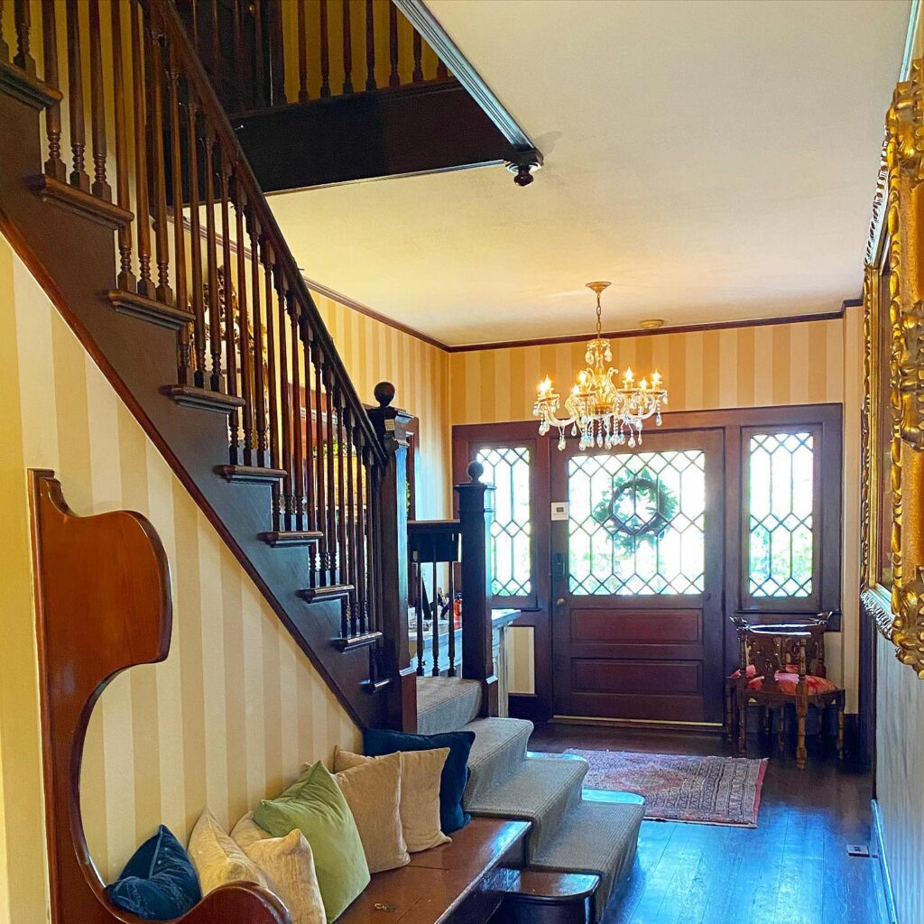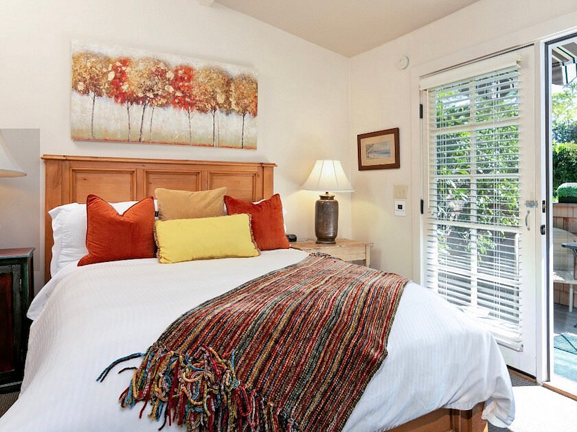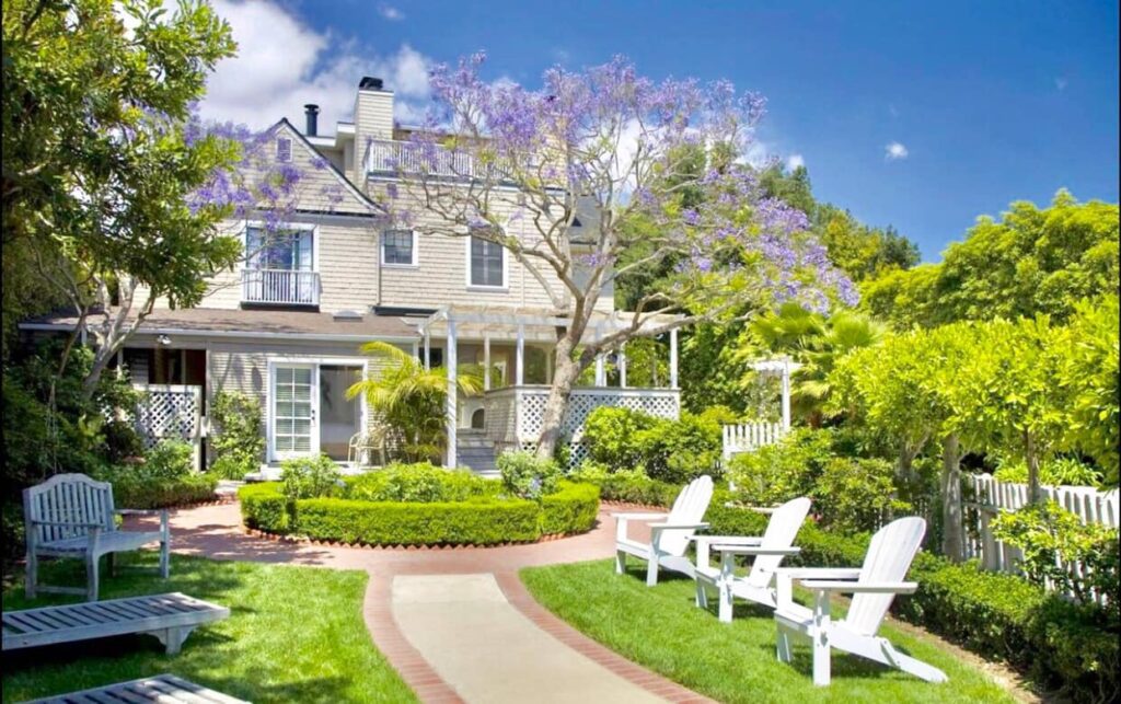 The Inn has been restored to the 1895 feel of the original architecture, with original wood floors, windows, moldings, with a touch of modernity. In addition, there is a large living room, dining area, sun room, back patio and 1/3 acres back garden to relax in. Every room is unique and carefully appointed with quality furnishings and fine linens. Many rooms have a wood burning fireplace and terrace. The Penthouse suite occupies the entire third floor. It has a King bed, wood-burning fireplace and a wet bar. The large bath features a whirlpool tub and waterfall shower. The large viewing deck offers comfortable seating, table and lounge area, a spectacular view of the ocean at a distance, palm trees views, and views of the red tile roofs in downtown Santa Barbara.