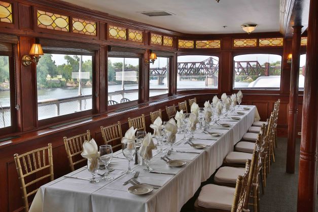 Join us aboard our authentic paddlewheel riverboat, revived to its former glory and moored along the Old Sacramento Waterfront. Originally built in 1927, The Delta King has been restored and converted into a 44-room boutique hotel with one-of-a-kind facilities for riverfront dining in The Pilothouse Restaurant or Delta Bar & Grill, nightlife, conference facilities, and a beautiful riverside wedding and event venue. Ideally located adjacent to downtown, the Delta King offers an authentic cultural perspective to the blossoming city.