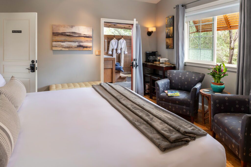 This Northern California bed and breakfast, Features seven premium rooms and suites, two of which are pet-friendly. Choose from rooms with private decks and patios, cozy fireplaces, and private outdoor soaking tubs. Each space is thoughtfully designed to suit every type of traveler, from couples seeking a romantic getaway to adventurers exploring the foothills.