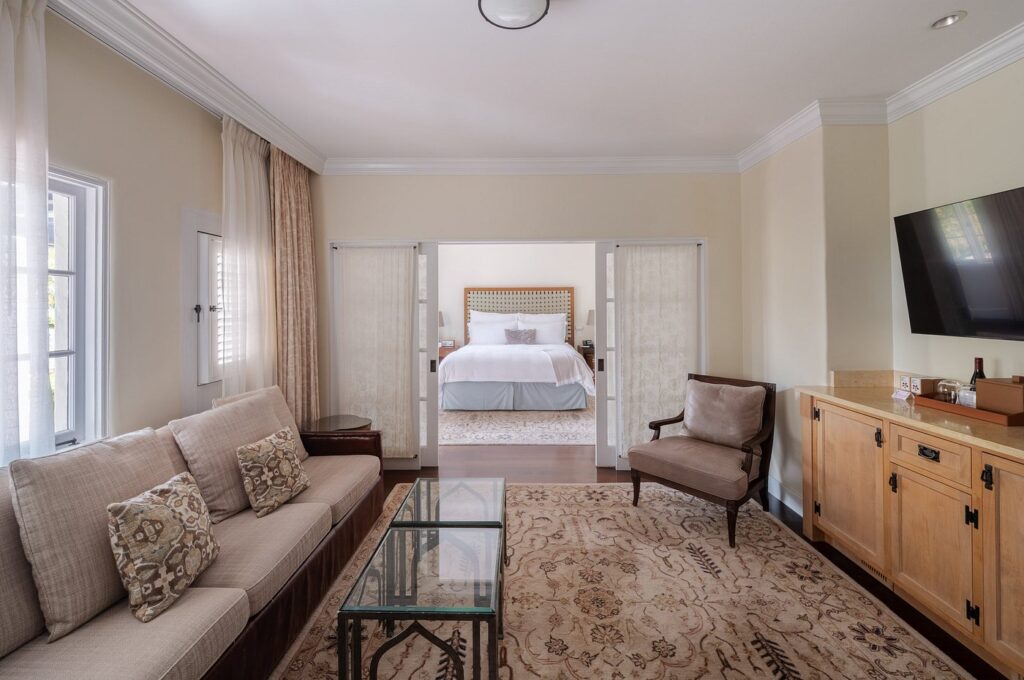 Bathed in golden light and cooled by ocean breezes, El Encanto is perched high in the Santa Barbara hills – a sanctuary where stillness reigns. Terracotta rooftops peek through palms, winding pathways beckon quiet exploration, and each vantage point reveals a new horizon of sea and sky. Here, time slows, and the world below gently fades. El Encanto honors Santa Barbara’s architectural heritage. Blending California Craftsman elements with Spanish Colonial influences, this legendary sanctuary captures 1920s elegance enhanced by contemporary artistic touches. Creations from local artist Charles Arnoldi bring additional visual impact to your experience.