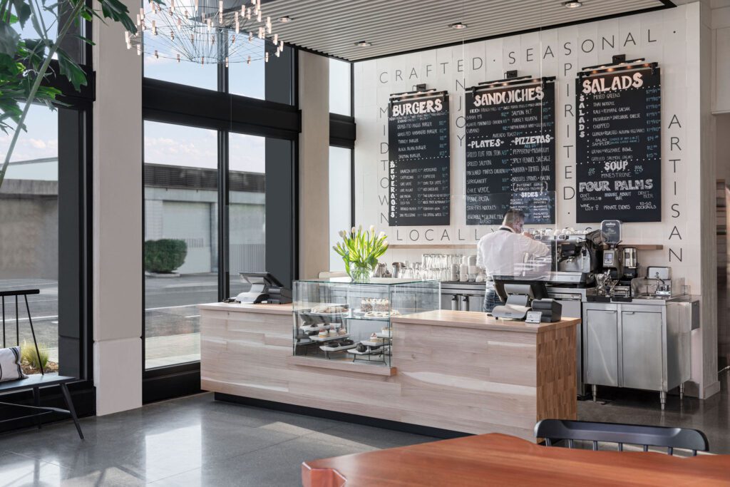 Fort Sutter Hotel is the perfect blend of artistic style and urban panache. Brimming with vibrant energy, Fort Sutter reflects the unique culture and character of Midtown Sacramento. Relax in chic modern guestrooms and suites, enjoy alfresco cocktails at Four Palms Bar, or take in a delightful meal at Cafe Bernardo, no matter the choice you’ll find yourself buzzing with the bright energy of Midtown. Café Bernardo serves quality farm-to-fork American cuisine all day long, while our neighborhood bar, Four Palms, is the heart and soul of the property delivering a selection of signature cocktails, fine wine, and local beers.