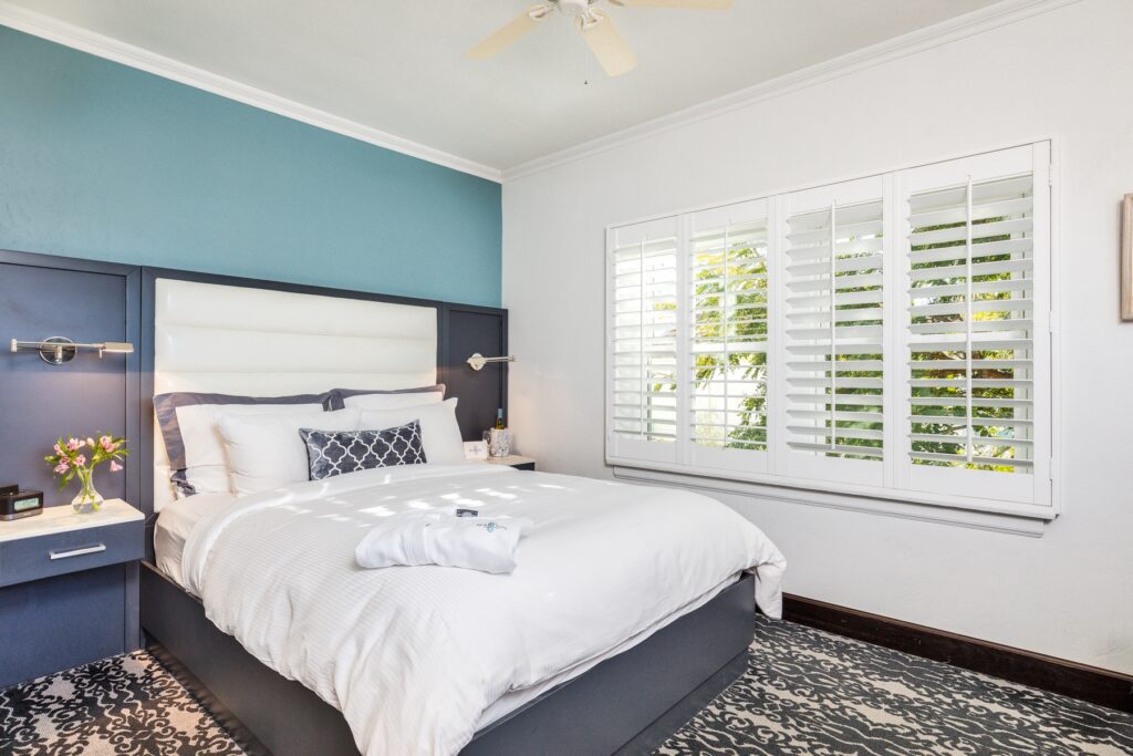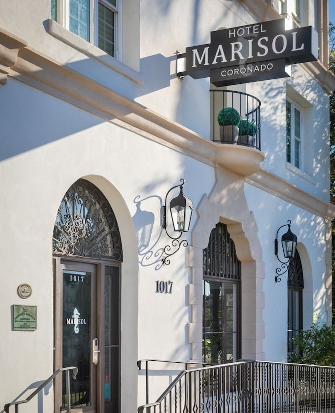 Chic and sophisticated…Coronado Island’s favorite boutique hotel, the Marisol is the perfect couple’s retreat one block from the nation’s best beach! Relax in its understated elegance, a perfect blend of European small hotel and California beach vibe. The fifteen rooms and junior suites feature custom designed furniture, fine Italian linens, and large HD TVs. Extremely fast WiFi is available throughout the property and your in-room desk/table includes a charging station for your electronic devices. Each room also has a refrigerator stocked with chilled water, Keurig brewer, and safe. A generous continental breakfast – including fresh pastries, hard boiled eggs, cheese, fruit, granola, yogurt, coffee and tea – is provided each morning. Dine in the private courtyard and revel in the California sunshine. There’s no need to bring a car to Coronado. Everything is close – the town is only one mile across – you can walk or borrow a loaner bicycle from the hotel. Enjoy water sports, browse unique shops, indulge in fabulous meals, attend live theater, and even step back in time to explore Coronado’s history on guided tours. Our staff will help you plan your perfect itinerary. San Diego’s main attractions are just a ten-minute ride away. Plan your next corporate retreat or family celebration. Meeting space and catering are available.