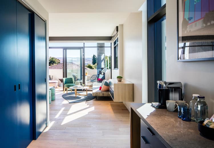 Bright and airy, with welcoming touches like hand woven rugs, custom built-ins, and natural wood, our rooms have a vibe of modern simplicity so you can forget your cares, and enjoy the view.