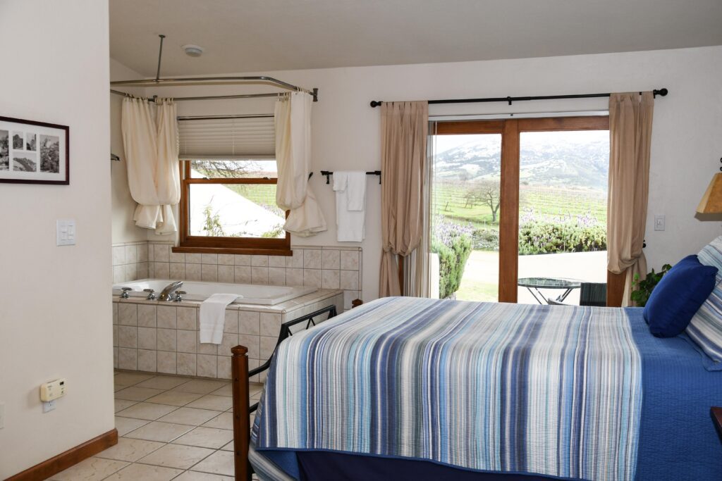 Each of our guest rooms promises exclusivity with private entry, a cozy patio featuring a gas grill, and a luxurious private bath, ensuring a truly unforgettable retreat. Our Mediterranean-style inn sits at the heart of the 160-acre Brosseau Vineyard Estate. Our organically farmed vineyard is comprised of 45 acres in the Chalone Appellation of Monterey County, California. Grab a glass of wine and stroll through our vineyards at your leisure. In the fall you’ll have the opportunity to sample wine grapes ripening on the vines just before harvest!