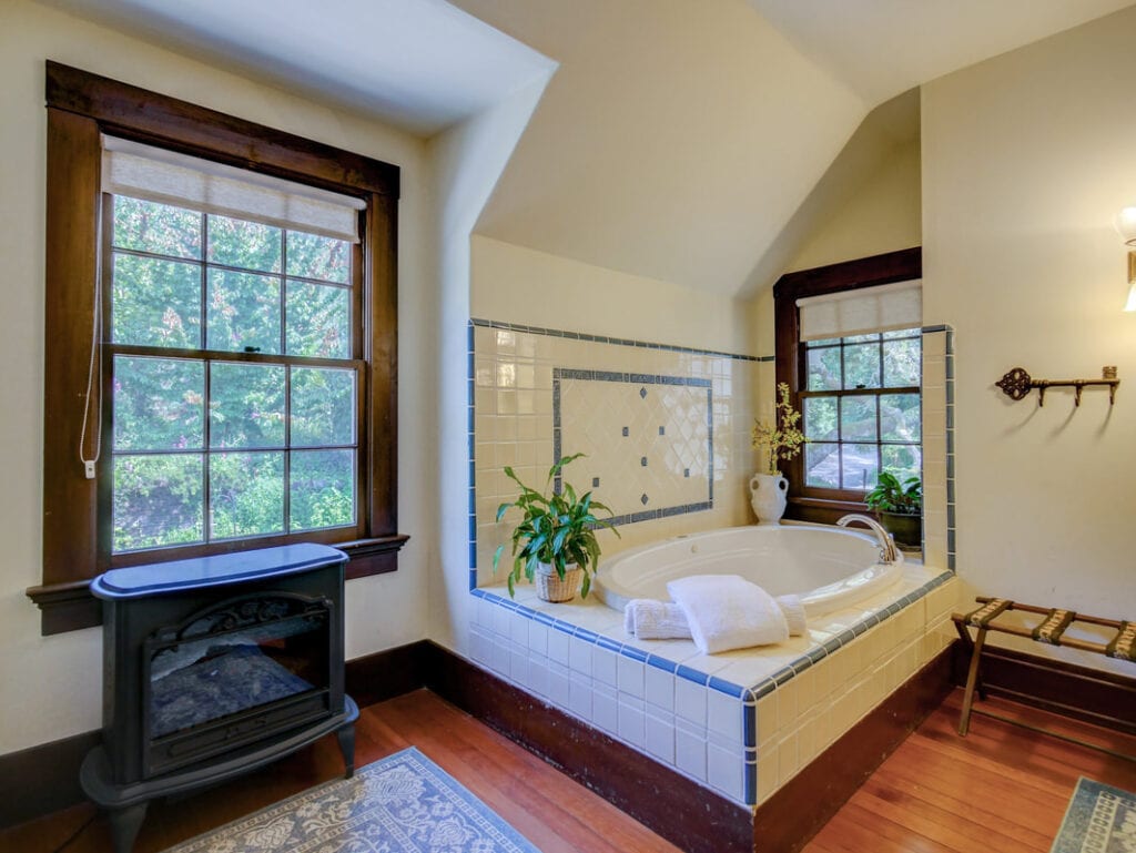 Sand Rock Farm is private, peaceful, and rural, yet close to everything – beaches, mountain biking, redwood forests, restaurants, golf courses and so much more! The five individual suites are available to rent 10 days prior to booking date, based on availability. All rooms have plentiful natural light from windows overlooking gardens and trees. Each room is furnished with Jacuzzi tubs (all of those are indoor except the Hidden Garden Suite, which has an outdoor Jacuzzi), electric fireplaces, television, WiFi, towels, hand soap, lotion, shampoo/body wash, conditioner, and a hair dryer. Guests have access to a communal refrigerator/freezer and ice. Local, organic breakfast supplies are stocked in the kitchen for you and include coffee, tea, yogurt, cereal, egss and fruit. Feel free to supplement with your own items.