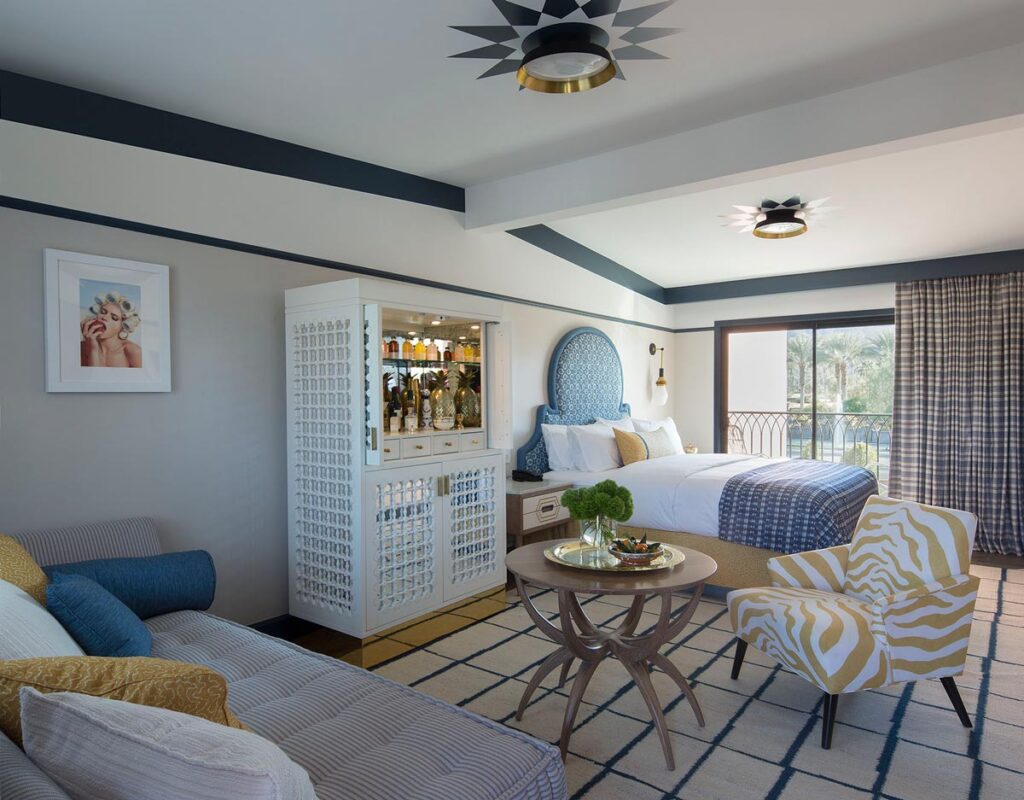 Created by Common Thread Hotels, in collaboration with designer Martyn Lawrence Bullard, the Sands Hotel & Spa was conceived to be the first designer boutique hotel in the prominent and exclusive community of Indian Wells, California. The hotel offers 46 guest rooms, including two suites and one presidential suite – each with a unique personality. Using a series of different color combinations, bespoke furniture, and custom textiles, Martyn Lawrence Bullard provides each guest with an individual and unique experience.