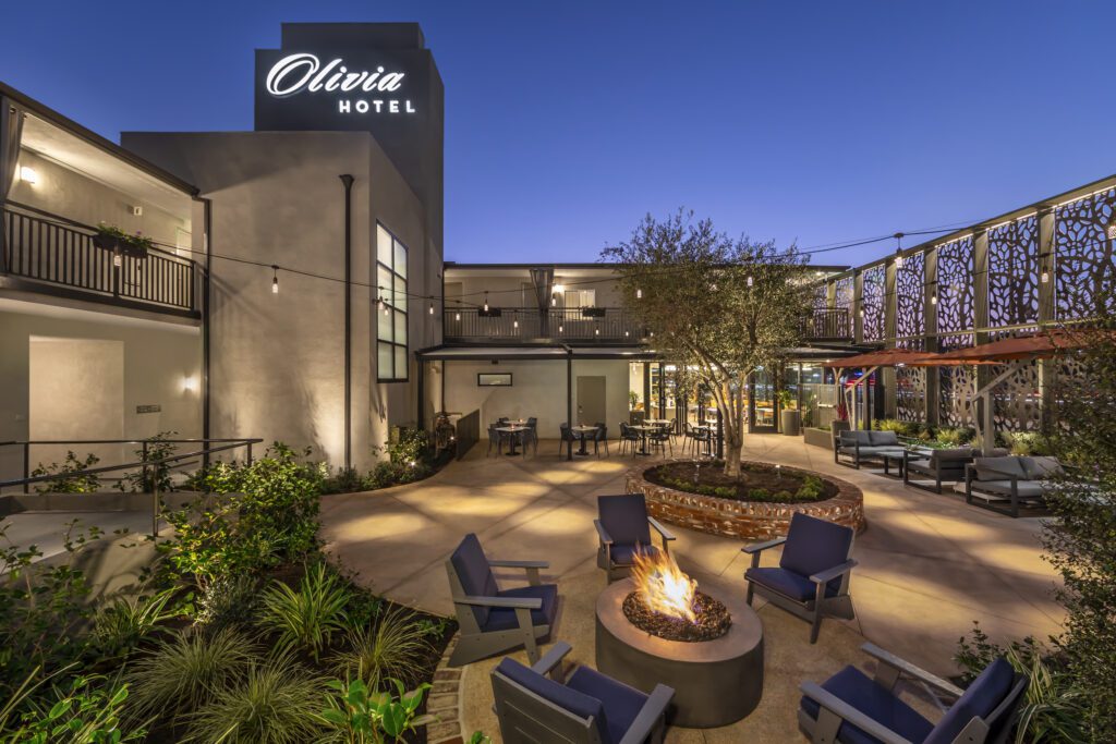 As the newest addition to the hospitality scene, prepare to immerse yourself in a brand new upscale boutique hotel with 56 modern rooms designed to provide the utmost comfort, set amidst the serene embrace of nature-inspired design. Step into a beautiful landscaped garden courtyard with a cozy firepit, beckoning you to unwind under the starlit sky.